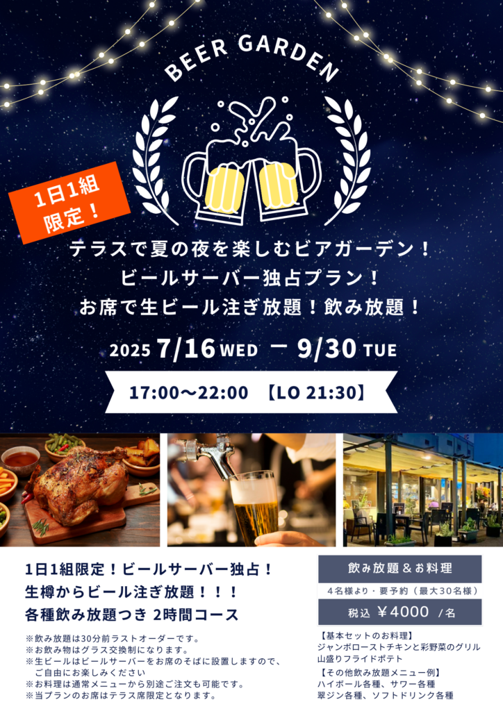 【1組限定!ビールサーバー独占プラン】 9月末まで